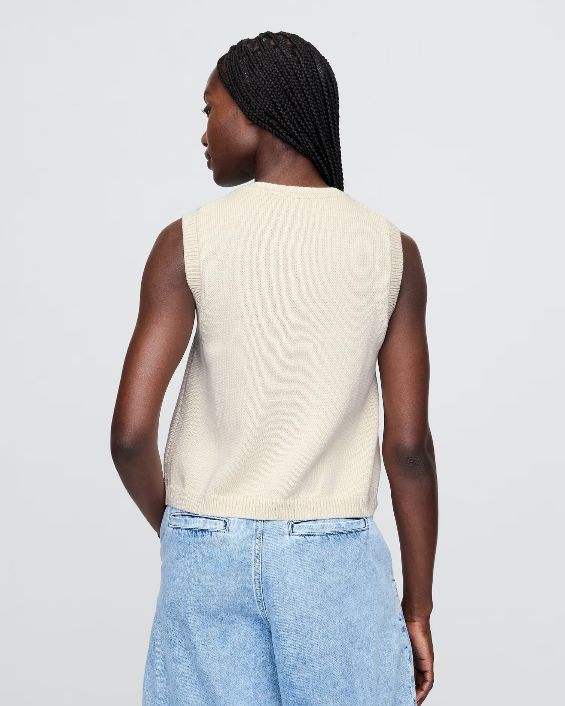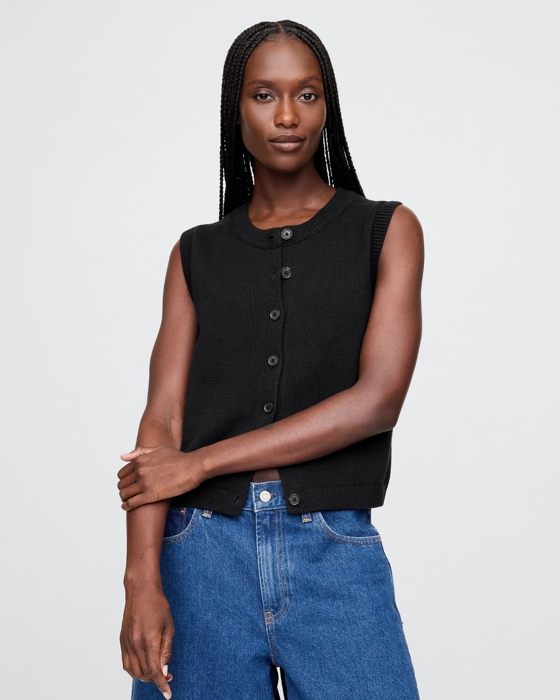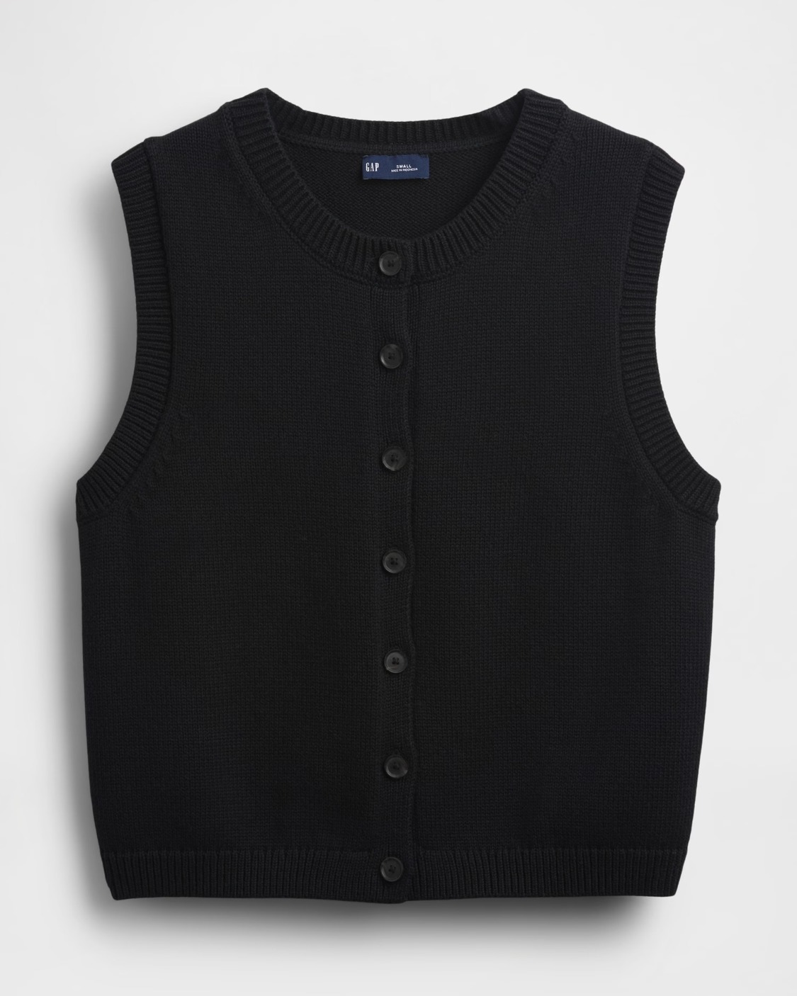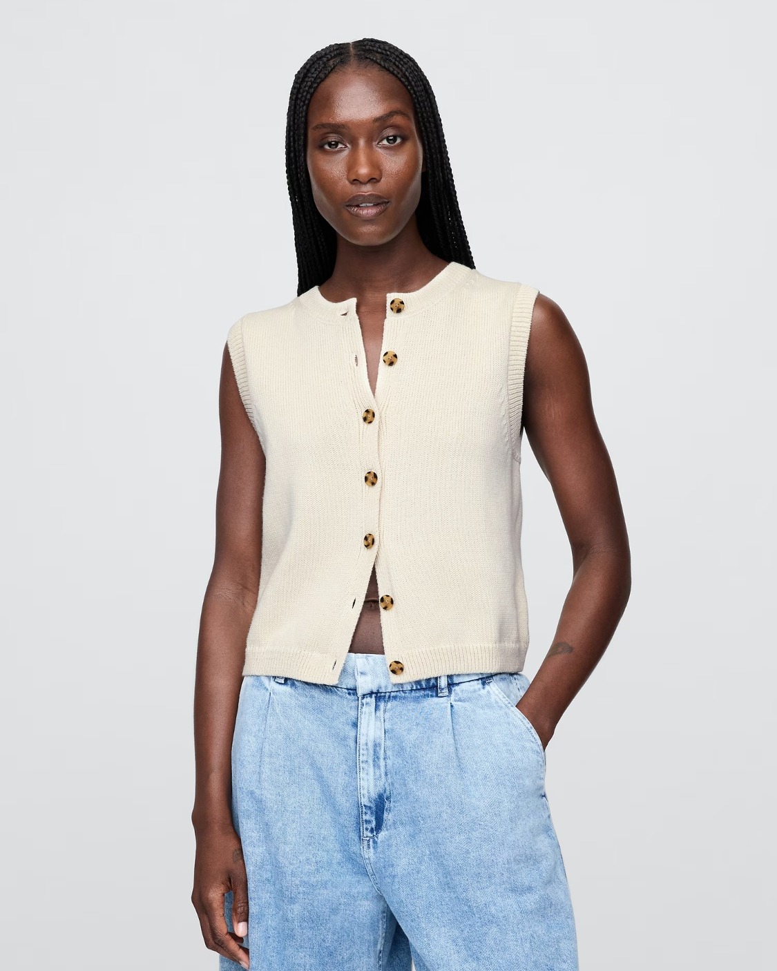 Soft cotton cardigan sweater-knit cropped vest.