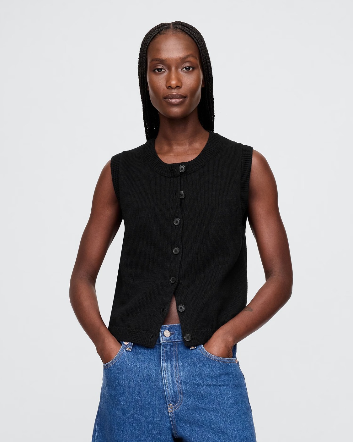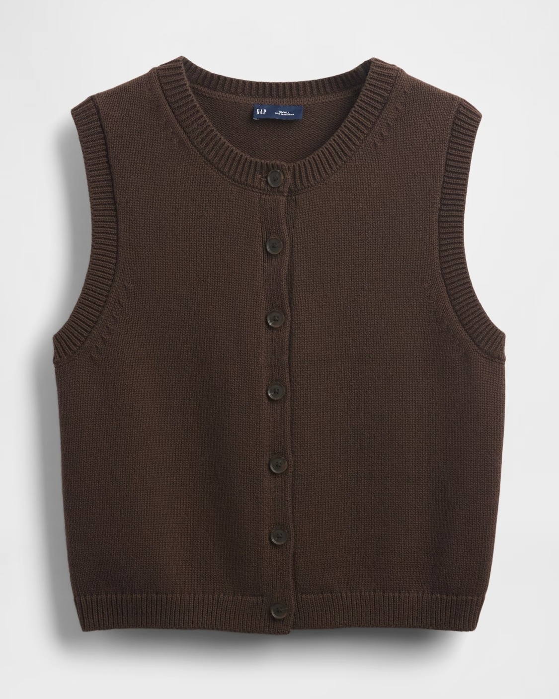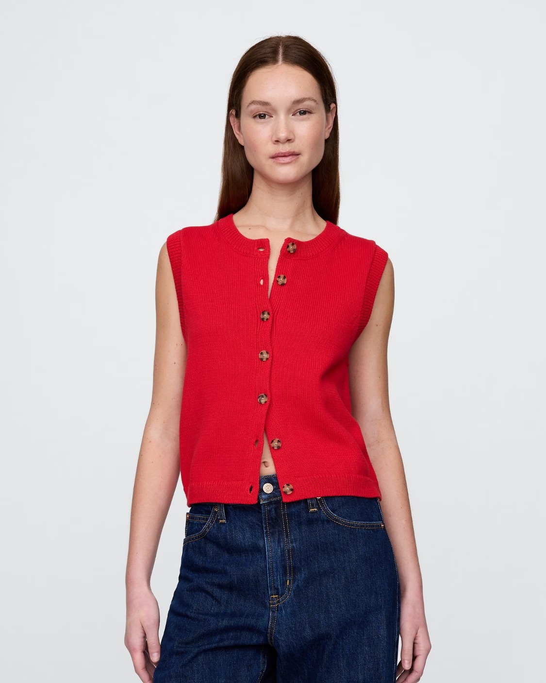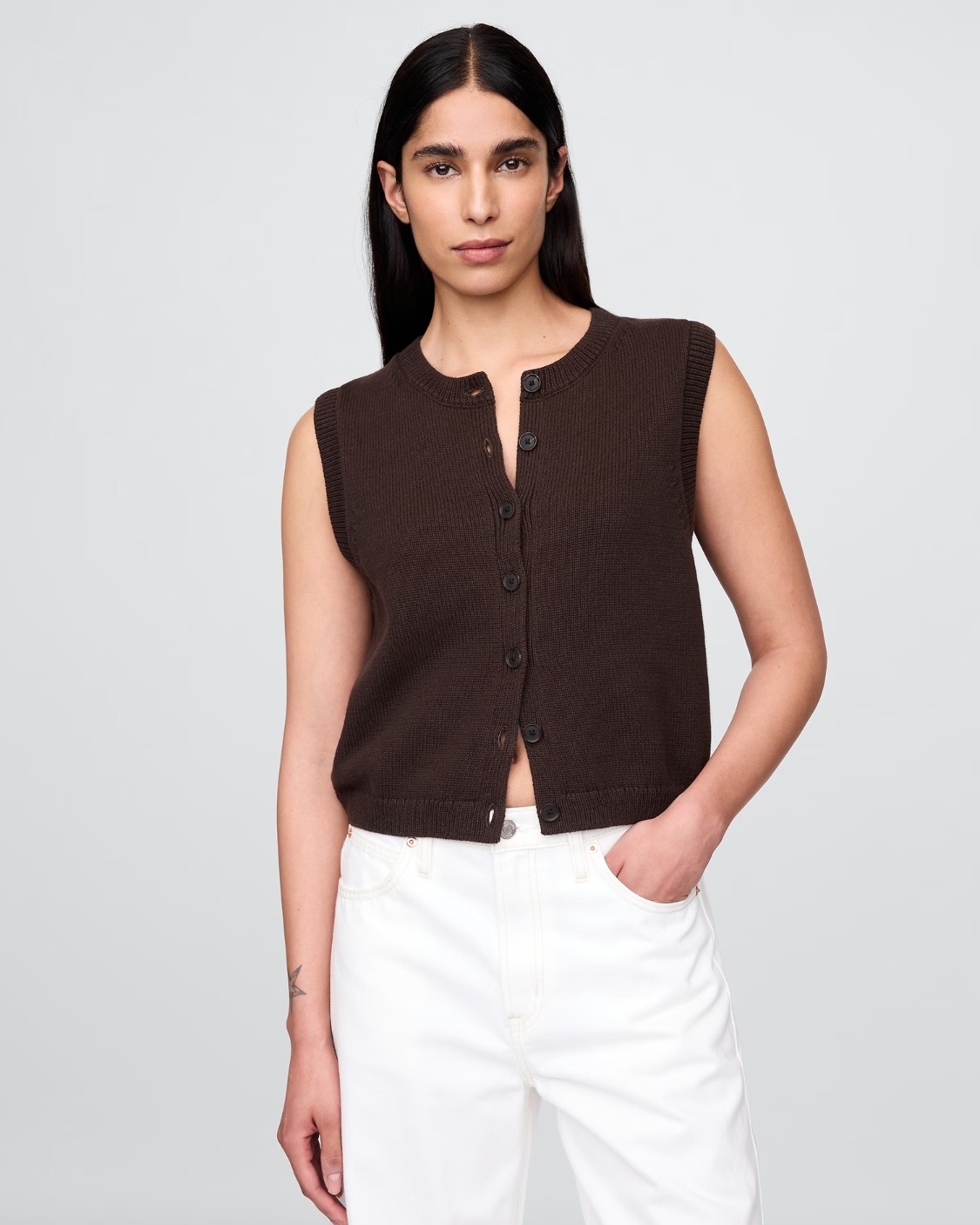 Soft cotton cardigan sweater-knit cropped vest.