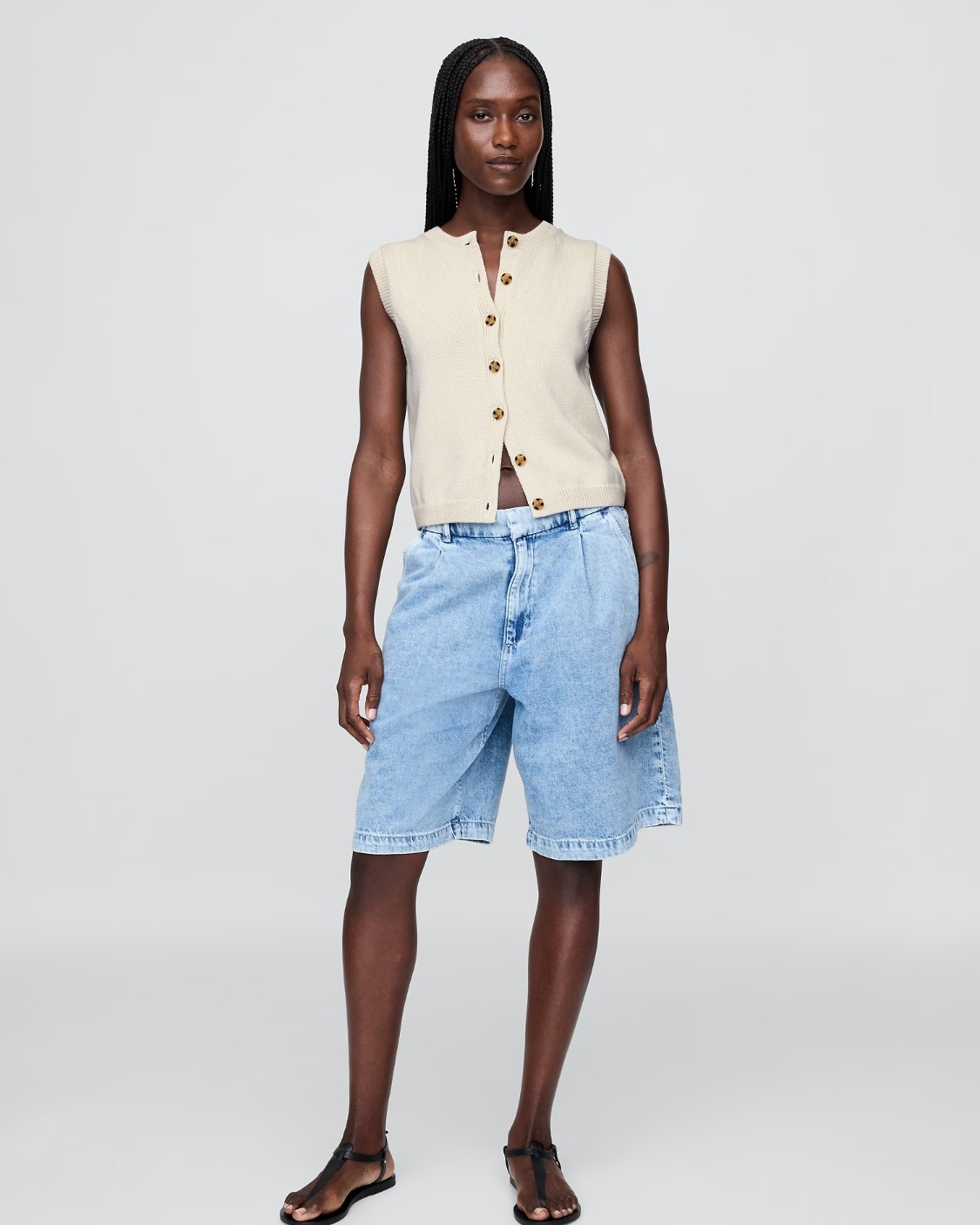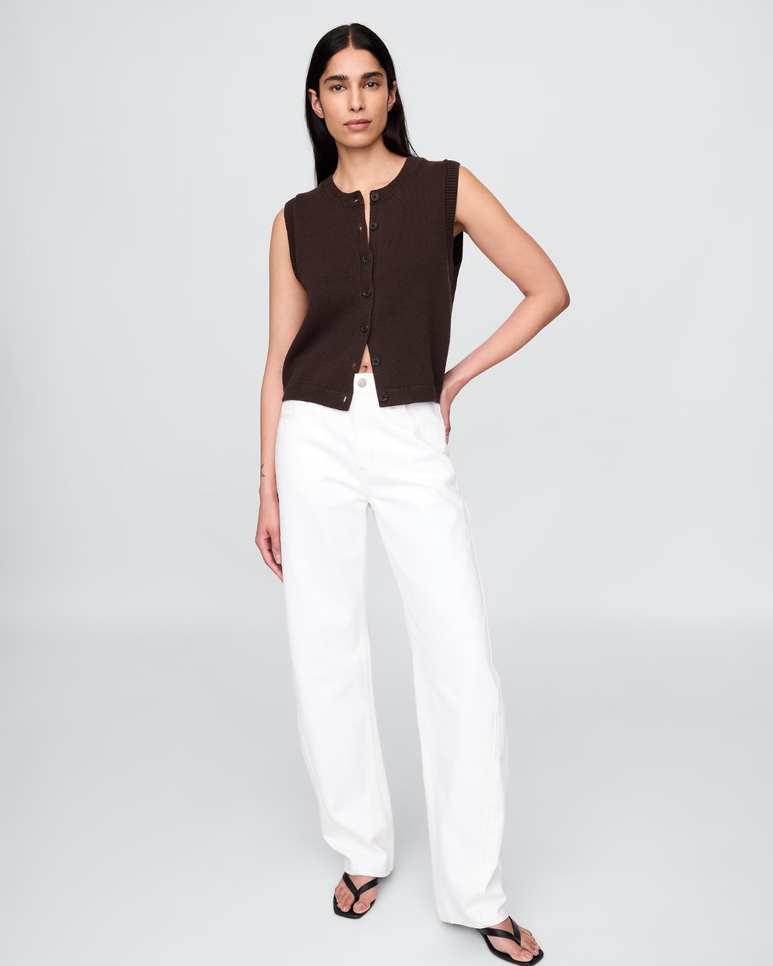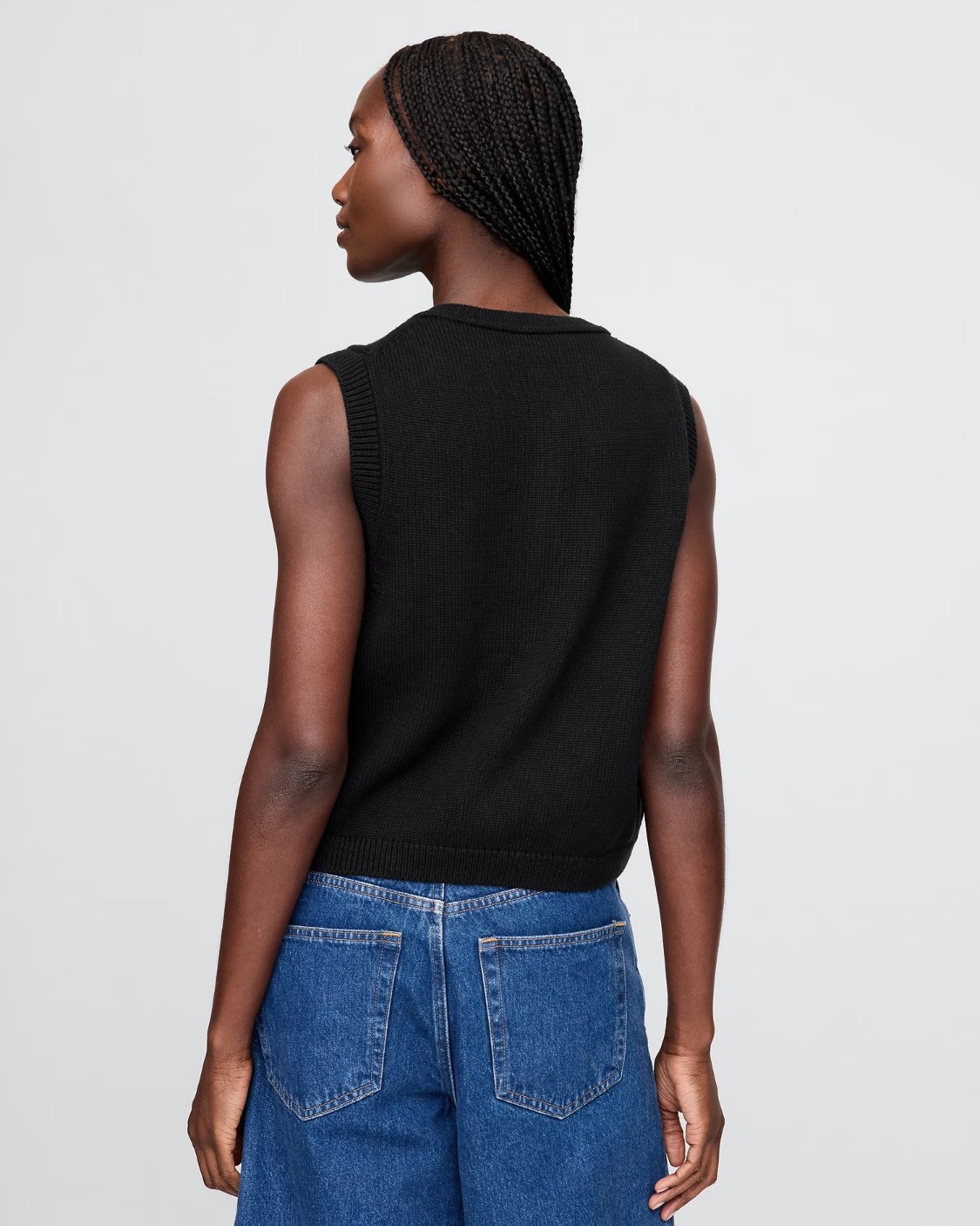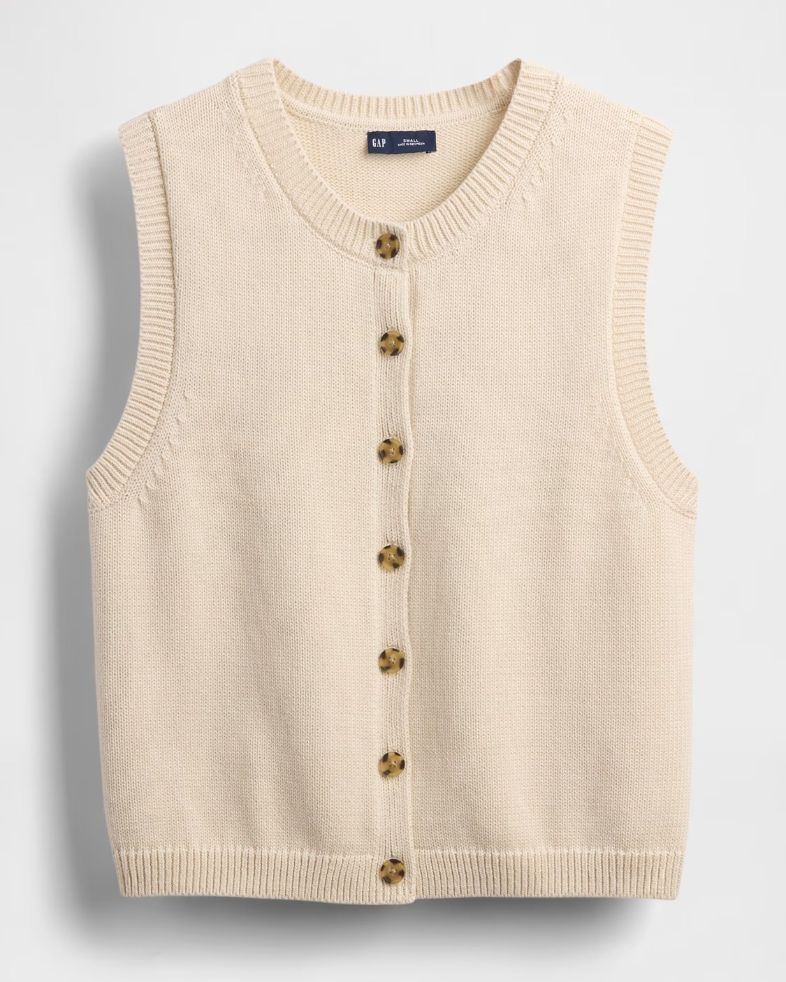 Soft cotton cardigan sweater-knit cropped vest.